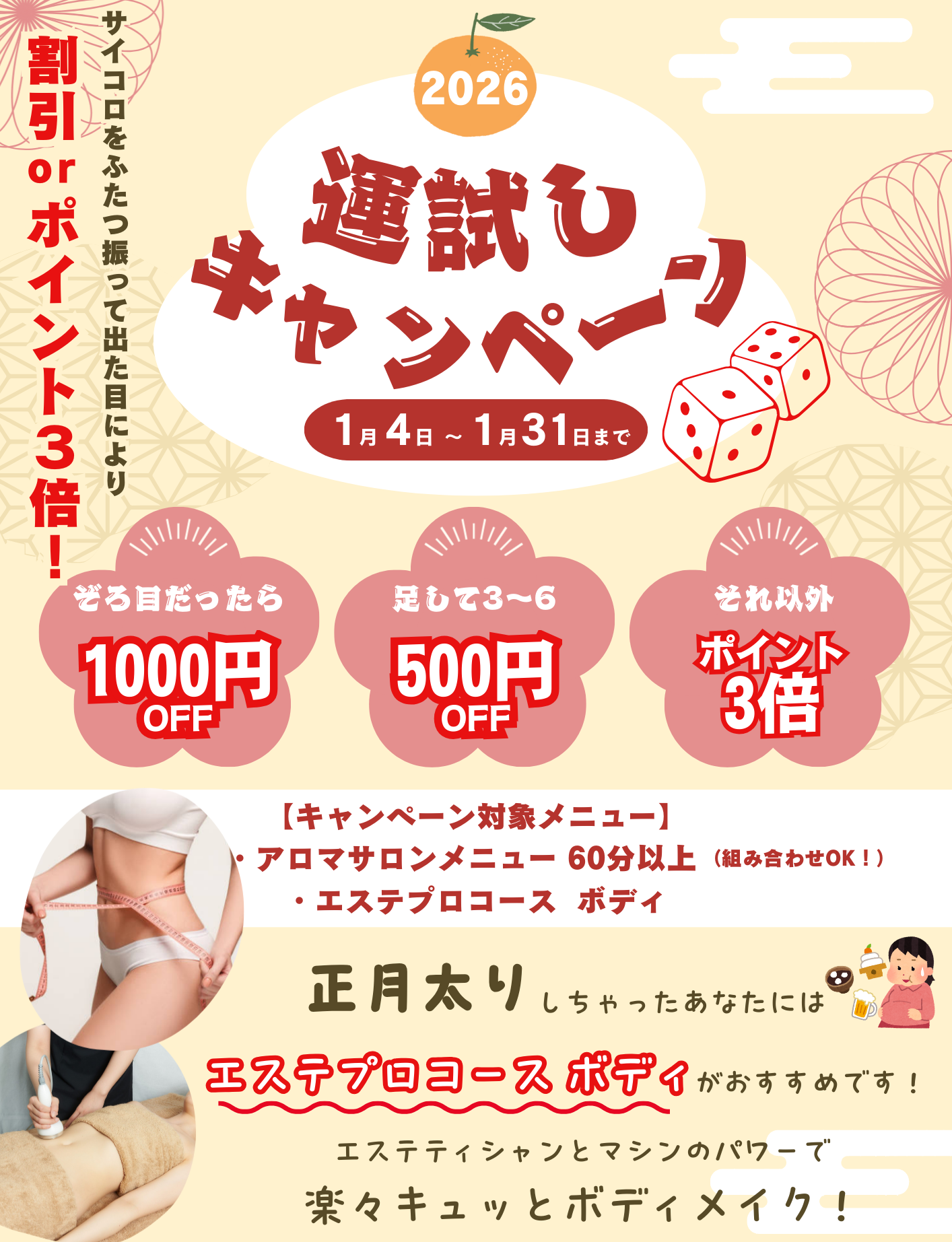 サイコロを2つ振って出た目により割引orポイント3倍✨